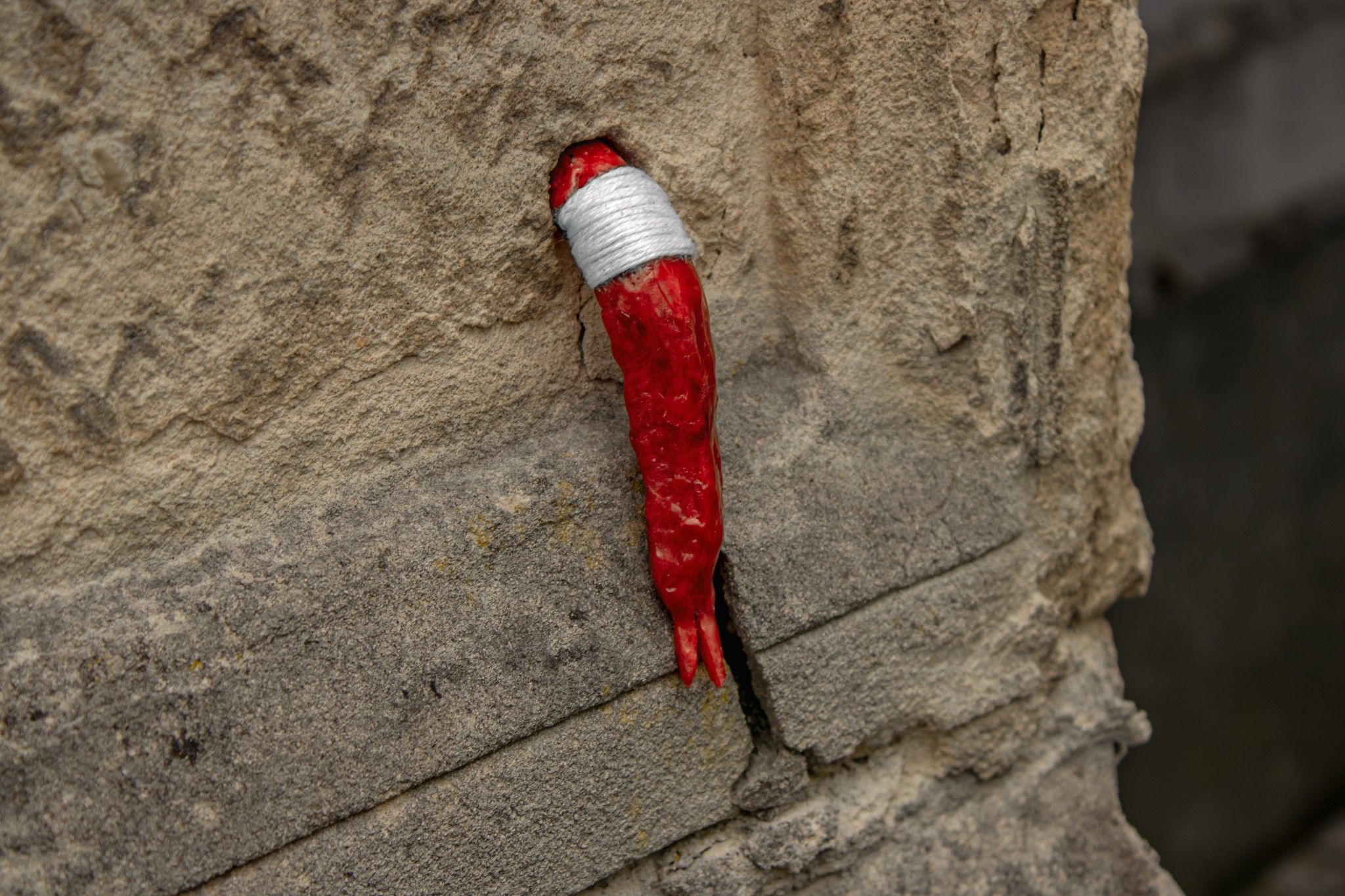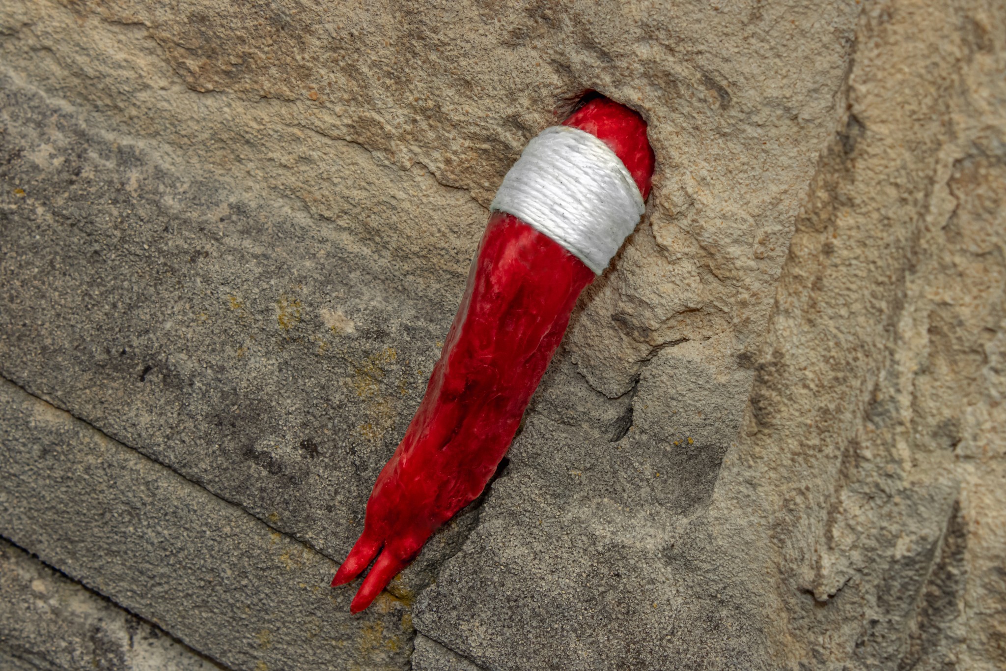 ![]() Pavel Polshchikov, ‘Mummy`s Tongue’, paraffin, wool threads, baptism by fire, 2025 |
