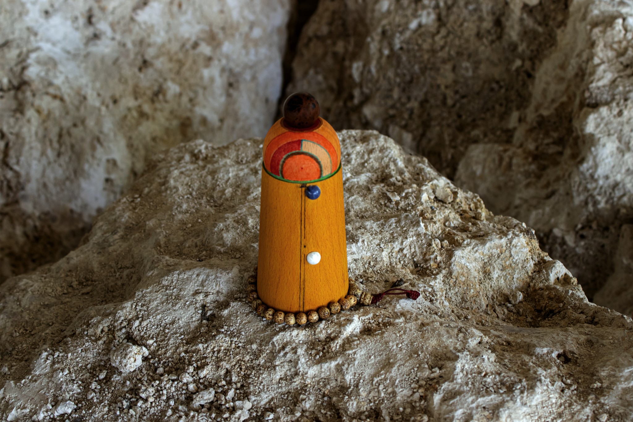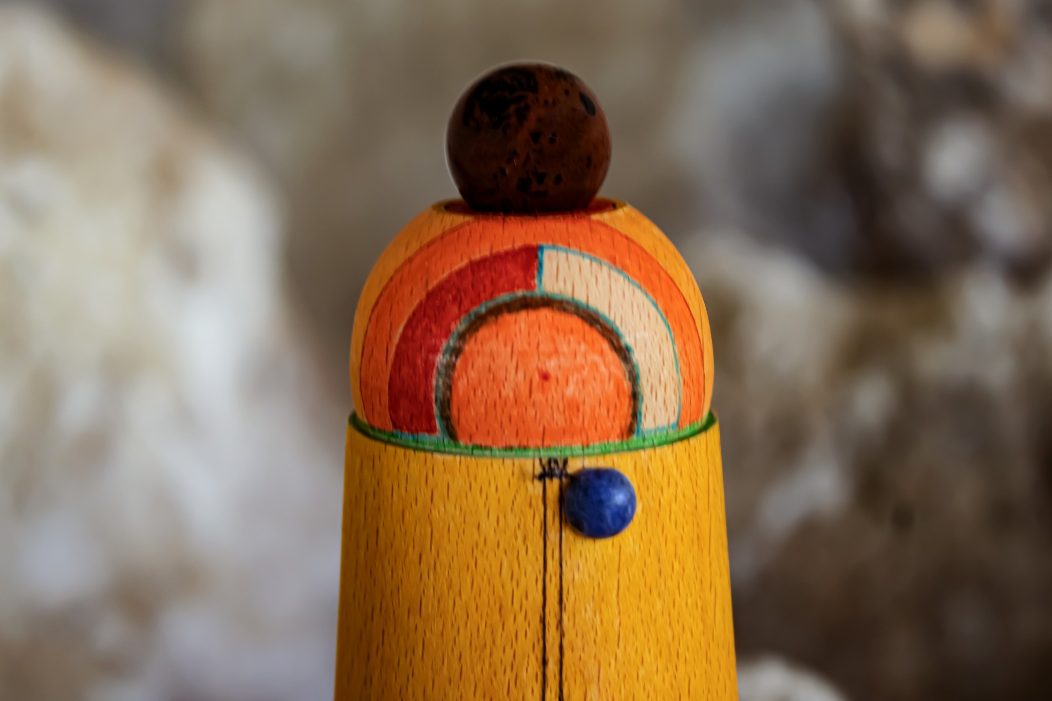 ![]() Pavel Polshchikov, ‘Babylonian Migratory Service’, wood, markers, agate, lapis lazuli, synthetic threads, bodhi beads, 2025 |