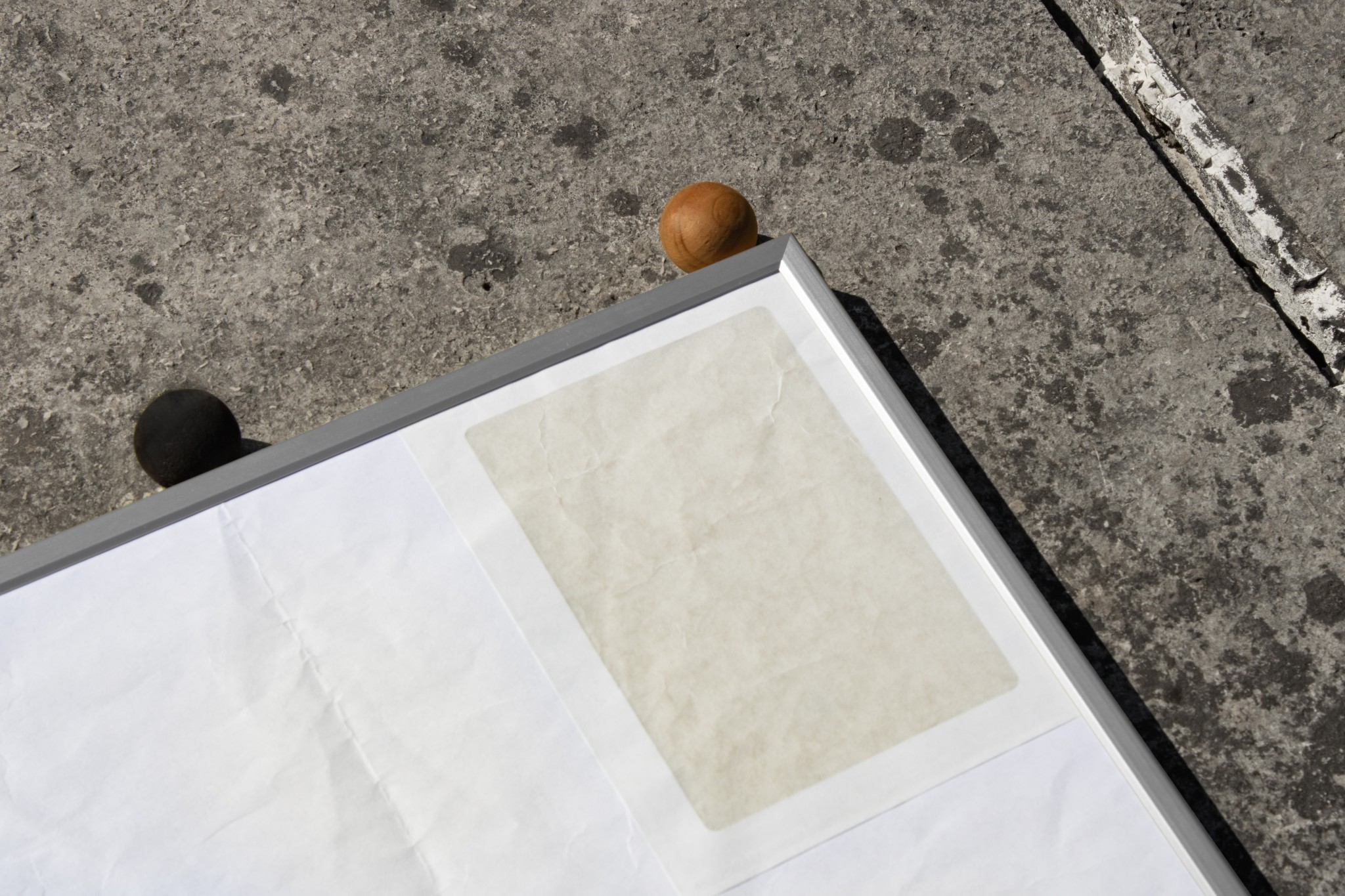![]() Pavel Polshchikov, ‘Windowcheck’, paper, tracing paper, wood, markers, iron, baptism by fire, aluminum frame, 2025 |
